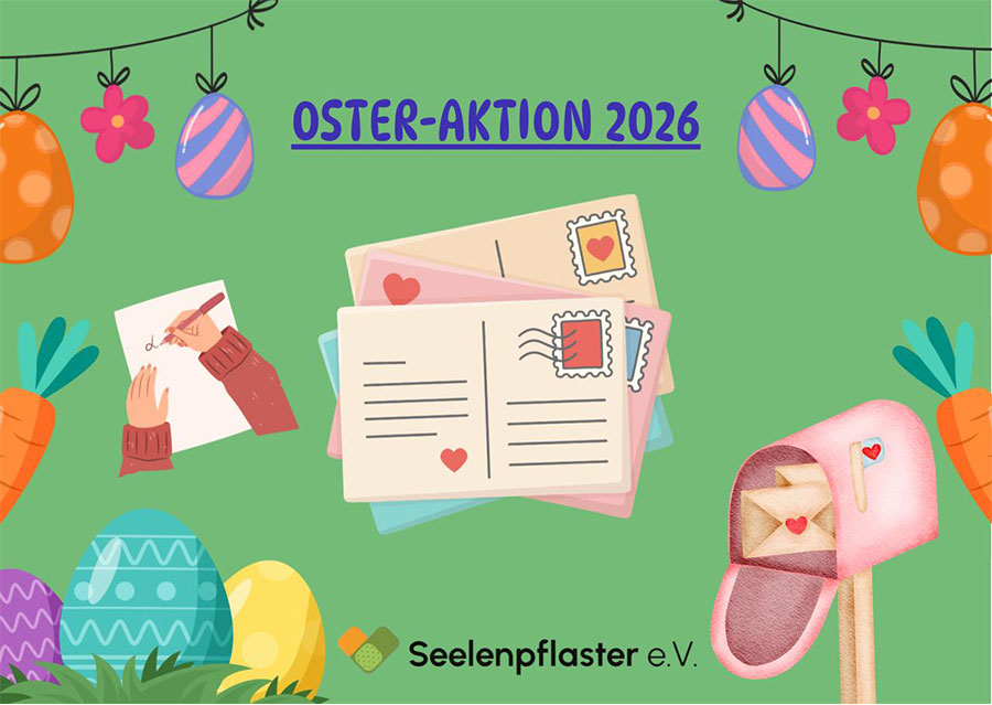 Alle, die mitmachen und ihre Adresse angeben, bekommen von uns als Dankeschön eine Seelenpflaster Oster-Postkarte mit einer kleinen Überraschung per Post nach Hause geschickt. Die eingesendeten Mutmach-Sätze werden wir mit Freude weitergeben und lebendig halten, denn sie verdienen es, gehört zu werden.